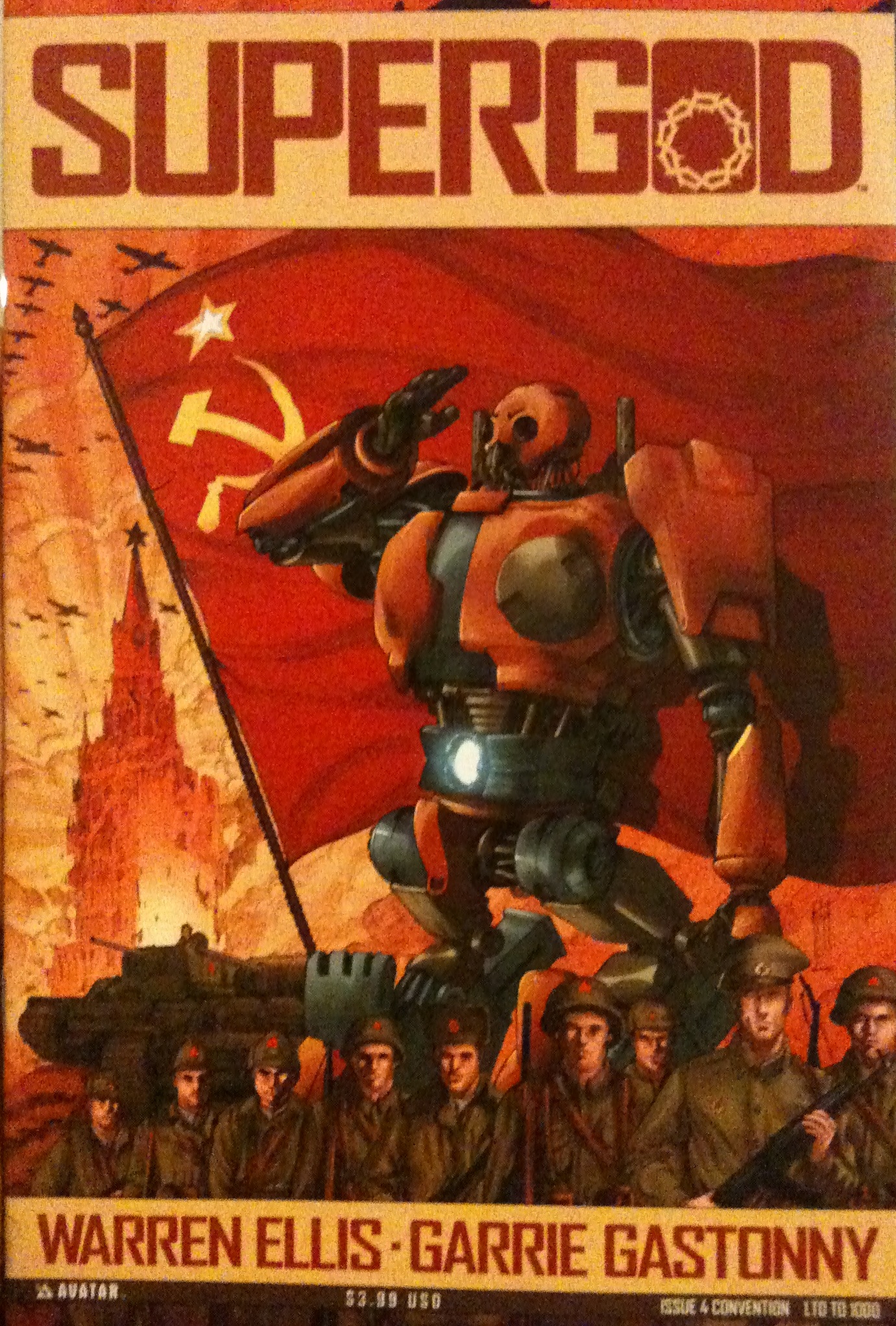 Supergod is a five issue comic published by Avatar Press, created and written by Warren Ellis (Red, Hellblazer) and drawn by Garrie Gastonny (Lady Death, City of Dust). Supergod is set on earth where various nations have created beings of tremendous strength and abilities for numerous reasons. A scientist named Simon Reddin is set as the narrator and tells one of his fellow colleagues how events came to be through flashbacks. He acts as a good narrator with his dry humor juxtapose with the bleak scenery surrounding him. Through the flashbacks we learn that the “gods” are unleashed on the world some sent to create and others to destroy.