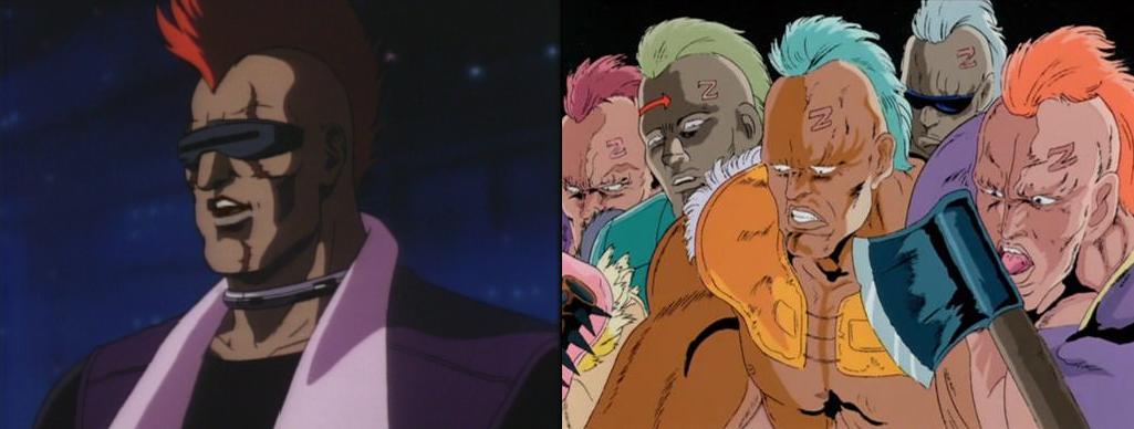Cyber City Oedo 808 takes place in the not too distant future of 2808 where crime is getting out of hand. Chief Hasegawa has gathered three cybercriminals, men with multiple life sentences on their head, and has given them an ultimatum. Work under him as part of the Odedo (formally Tokyo) cyber police taking in criminals, earning years off their sentences. From there, each episode of Cyber City Oedo centers on one of these threes newfound profession (which I might add comes with a police Jutte). The opener to each episode of Cyber City Oedo showcases these men’s police records and felony charges. First up to bat is Sengoku, the haphazard tough-guy with a pissed off attitude that sports a Pompadour with a ponytail in the back. Second is Goggles (it is pronounced the same way you would say Golgo in Golgo 13), a Mad Max (or Fist of the North Star, take your pick) looking thug with a visor and hacking skills that are not to be beat. Third and last of these three is Benten, who I consider to be the male equivalent for the character Cis from Program, but with a predilection for gymnastics and monofilament wire.