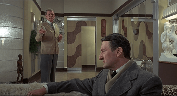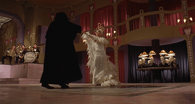The Abominable Dr. Phibes has excellent design work in both sets and costume. Dr. Phibes’ headquarters is one part evil lair and one part shrine to his wife. Things like a show of busts representing the doctors he still has yet to kill, two fake trees with stuffed owls that line his organ, and all of those red velvet curtains the cover every door and window. Dr. Vesalius’ apartment is also something to look at. With a more seventies open space look, with a hair solon like walkway with lined chairs, and a ton of randomly placed statues. Costume wise, Dr. Phibes constantly switches between white robes to 20’s gentleman attire like it was nothing. Vulnavia displays different dresses frequently, but always seems to go back to this casual outfit that reminds me of the way Siouxsie Sioux looked in the video for The Passenger.