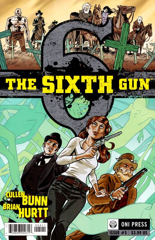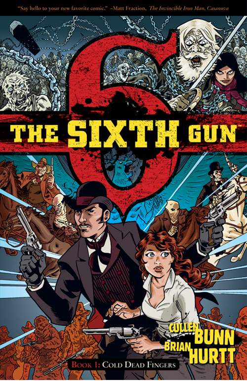 The Sixth Gun was written by Cullen Bunn, writer of The Tooth and many short fiction proses. The artist, Brian Hurtt, worked on Three Strikes and Queen& Country. Both men worked together in their first collaboration, The Damned. Bill Crabtree seems to have been added to the title as a colorist after the few issues.