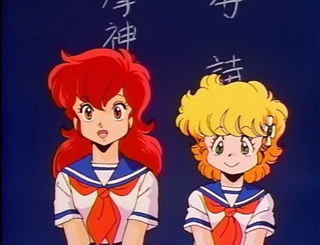 Now about the story, Graviton City is a popular locale that sits in a sixteen year old crater caused by a space ship crash. Instead of building around the ship like in Macross, the city is build right on top and high atop one of the highest spots in the city sits Graviton High, a gated all-girls school that finds itself with two new transfer students. One is the fiery red Eiko (spelled A-Ko in the sub) Magami; the other is A-Ko’s friend Shiko (C-Ko) Kotobuki, who looks much too young to be attending “high school loudmouth”. C-Ko’s overtly childish nature alienates all of her other classmates. All that is, but Biko (B-Ko) Daitokuji, the class brain who finds C-Ko’s childish nature to be infatuating to the point that B-Ko decides to force A-Ko out of the picture, taking C-Ko for herself.