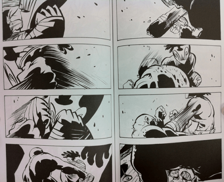 Cons: Human character designs did distract my attention more often than I would have liked. Falls on the shorter end of comics where every comic seems to either go on forever raking up shelves of volumes like Fables mentioned earlier, or has only enough issues to require two hands to count and not warrant page numbers. Hard to describe this, but the “Hey, ese” and “Hey, man” dialog between the people Joe talks to gets old rather quickly. To be fair I might have had a problem with it even if it was not there.