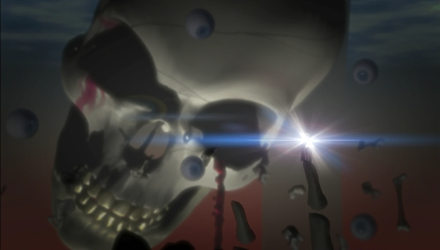 Le Portrait De Petite Cossette looks like a testing ground for what would later blossom into Puella Magi Madoka Magica. The series has this frenetic motion where the camera jumps around abnormally, positioned underneath a table one moment, right under the character’s chin the next. The camera’s focus is often placed behind objects like railings and stain glass, giving an uneven depiction of the character and their interactions. Jump cuts to several movie posters give this show an apparent feeling of unease and unstableness. The world made by the Cossette infused objects is filled with floating eyes, clock gears, and giant sized skeleton bones; attention to style that makes Le Portrait De Petite Cossette simply interesting to look upon.