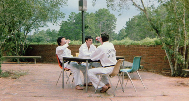 Alex One of the problems I have with Miami Connection is the jumpy scene transitions; suddenly it just cuts to a totally different location without any setup. After Dragon Sound plays for the first time and the song ends, the film cuts to the band that got fired just sitting in a car. It can be a little disruptive when viewing and almost takes you out of the film.