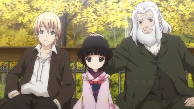 Oscar Claudel, French grandfather/Van Hohenheim impersonator (if Hohenheim could age), returns from a trip to Japan bringing back with him more than just lanterns and tea cups. Oscar has brought a young raven haired girl named Yuna, who has traveled to 19th century Paris to apprentice in Oscar’s artisan metal craft shop Enseignes du Roy. Located in the window shopping district Oscar helped establish named the Galerei du Roy, Oscar’s grandson Claude (yes, his name is Claude Claudel, a hilarious farce whenever spoken in the Japanese track) keeps himself occupied by being the shows semi-manager and only employee. Oscar introduces Yuna to Claude as his new assistant, and after enough cultural grinding of differences to prove a point (i.e. Yuna introducing herself with a bow that confuses Claude), the Claudel’s try to adapt to the new guest, whose way of life is foreign to that of France.