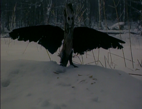 An axe chops up some wood into lumber with manmade human designs naturally carved into them. We follow the wood people as they bring about the beginning of spring by helping saplings grow and water to burst through their ice tombs. At one point, a bird flies in and attacks one of the wood people, pecking/disemboweling the lumber into nothing but splinters. Once he finishes though, its body takes on the appearance of the tree people and soon he flies around bringing the drastic return of winter.