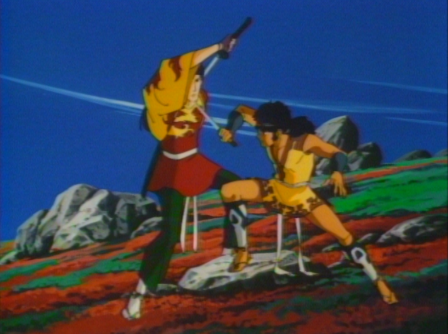 The Dagger of Kamui blends a sense of adventure and expedition with revenge and loss, without leaning too far in either direction. That is, the plot does not try to be a gritty tale of vengeance and death, nor does it aim to be an overly-idealistic story wherein the main character accomplishes his goals with the power of determination. The result is a film permeated with a strong sense of bittersweetness, yet still manages to be a satisfying, entertaining tale. Some parts of The Dagger of Kamui feel rather dragged out though, particularly during Jiro’s travels in America, and there are some odd logic-bending linguistic issues (how is Jiro able to conveniently communicate with an Indian tribe in Nevada?) but they don’t detract from the movie’s overall good quality.