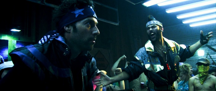 Pros: In between the seriousness of the plot and the overly dramatic points, The FP has some genuinely funny moments, mainly coming from the side character KCDC. KCDC’s duck speech, which is effectively the core plot and part of JTRO’s over arching drive as well as his interpretation of the national anthem are good capping points to some of the more serious scenes. All of the Beat Beat Revelation matches, with the accompanied mesmeric soundtrack, break up the movie and are enjoyable considering Jason Trost, in real life, is a pretty competent DDR player . The costumes all have personality that match their characters, for instance L Dubba E wears a lot of chains, gold jacket, and even has gold teeth, that match his flashy and conceded attitude.